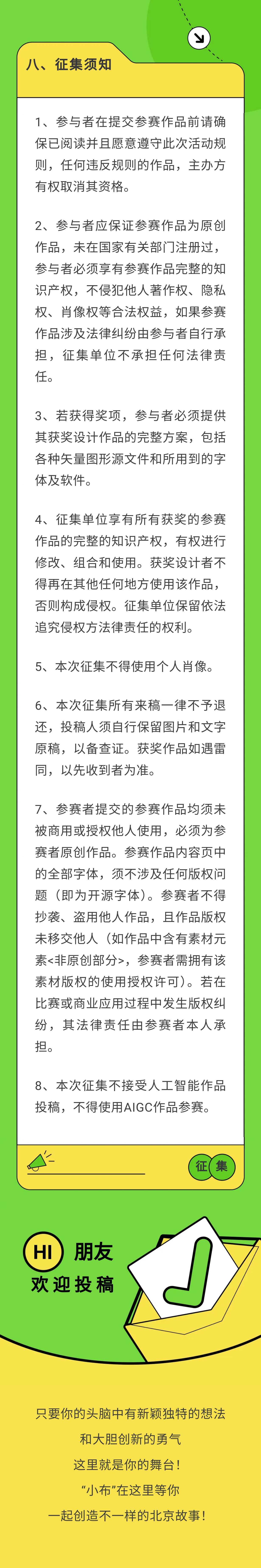 近日,北京市人民政府新闻办公室官方账号“北京发布”启动2024IP形象设计征集活动。该活动面向全社会专业设计机构、独立设计师、设计爱好者、高校师生等进行征集,个人或团队均可参与。据主办方相关负责人介绍,活动旨在通过面向全社会的创意征集,借助专业的设计创意,为“北京发布”设计出一套独一无二、别具创意的IP形象和VI设计,多方位、多角度展示北京城市形象和文化。入选作品最高可获得2万元的著作权转让费。作品投递时间持续至10月15日。