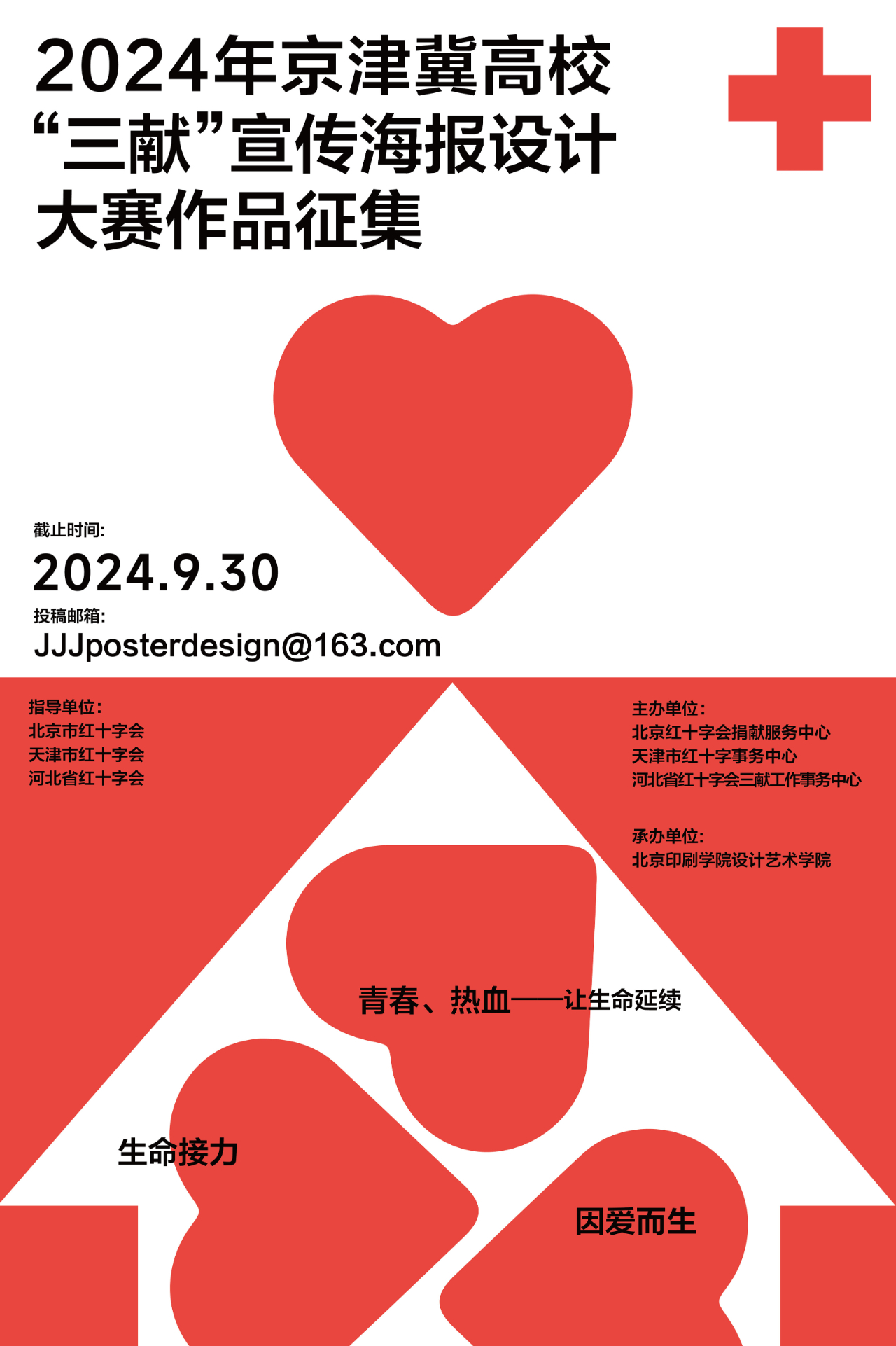 为迎接中国红十字会建会120周年,深入宣传贯彻《人体器官捐献和移植条例》,大力弘扬“人道、博爱、奉献”的红十字精神,宣传无偿献血、造血干细胞捐献、人体器官捐献科普知识,通过开展宣传海报大赛作品征集活动,带动更多高校学生了解“三献”知识,积极参与无偿献血和造血干细胞捐献,以激励青年志愿者践行社会主义核心价值观,传递社会正能量,彰显新时代青年的精神品格与责任担当。
